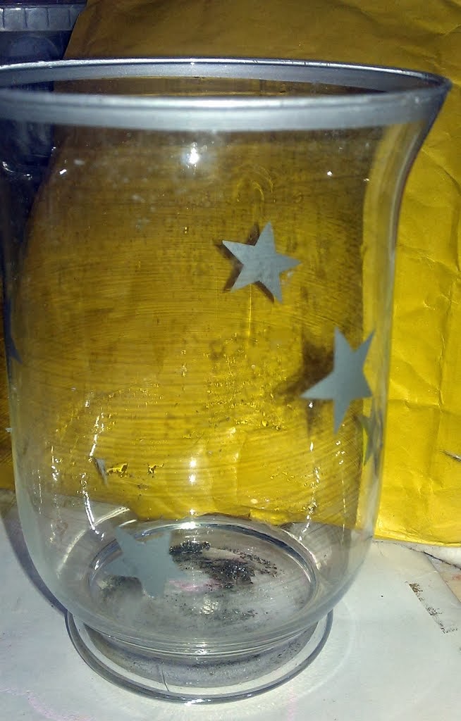Και μιάς και είχα το δαντελένιο ρυζόχαρτο, έντυσα μ'αυτό και μια παλιά γυάλινη φωτοφόρο που έμενε παροπλισμένη εδώ και χρόνια