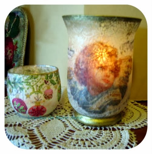 Let's make them two! Do you mind??? Another smaller photophore with ricepaper and napkin decoupage.
