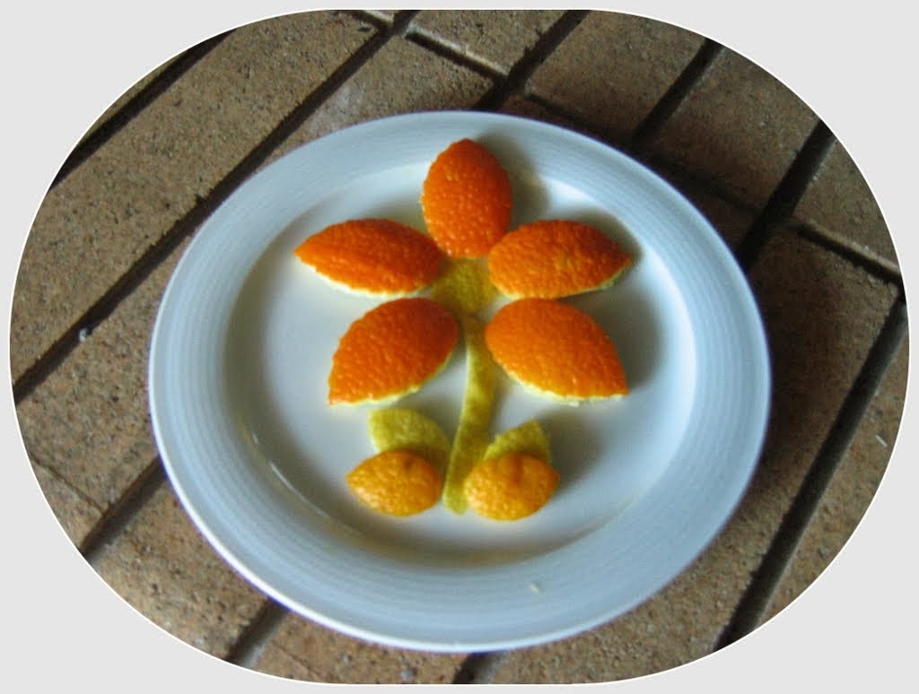 Ta fleur en écorce d'orange est toute mignonne. Cela sent tellement bon!