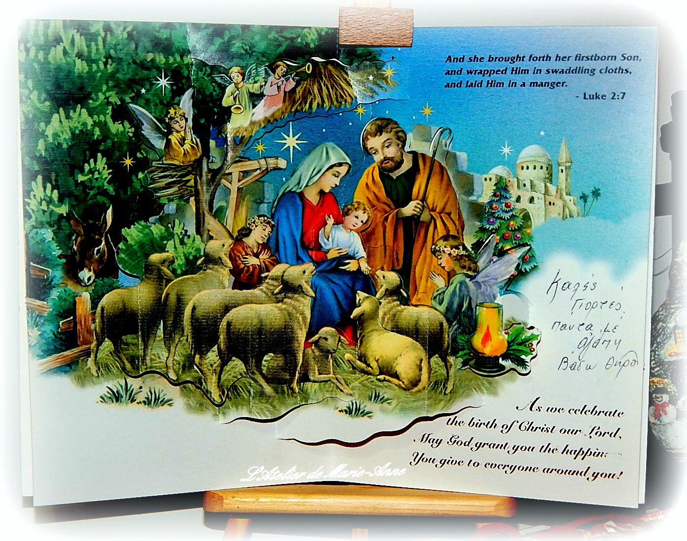 I was happy to discover it was from my blog-friend Eleni who sent me a beautiful creation - an elegant woman bust on canvas next to a cute gilded carton flower as well as a small carton house with a battery operated light, all that accompanied by a charming Christmas card full of good wishes. Thank you so much, dear Eleni!!! Ι also wish you happy holidays and may the new year bring you all the best for you and your family.