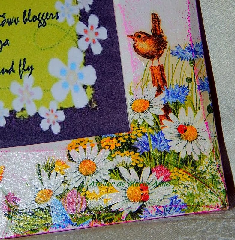 Καδράκι από παλιό ξύλινο δίσκο, με κρακελέ, decoupage, ζωγραφική με ακρυλικά και αυγουλάκια από πολυμερικό πηλό.