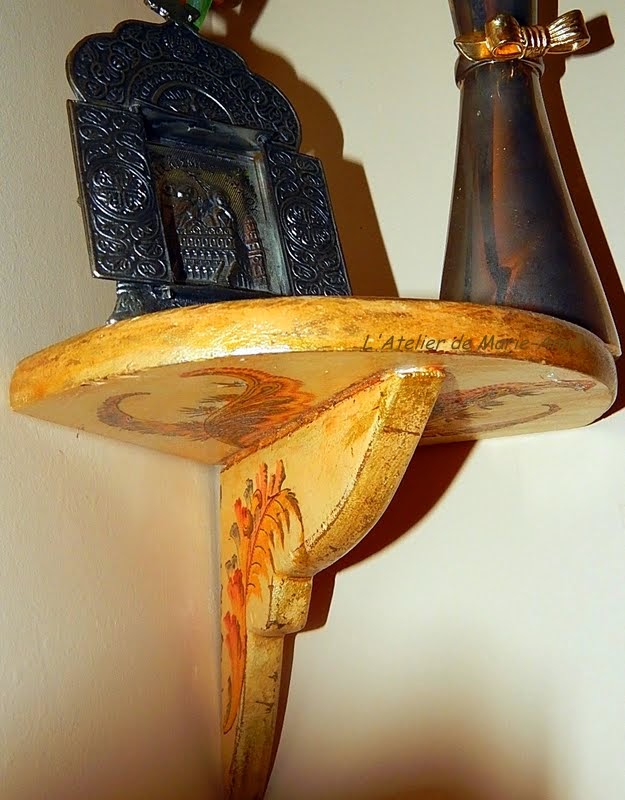Την εταζερούλα την καθάρισα και σκεφτόμουν να την κρεμάσω κάτω από τις εικόνες, αλλά τελικά την κρέμασα πάνω από ένα καλοριφέρ (κάποια στιγμή σκοπεύω να την ντεκουπάρω κι αυτήν). Προς το παρόν, την χρησιμοποιώ συχνά ως 'εκθετήριο' για να φωτογραφίζω τις 'δημιουργίες' μου...!!!