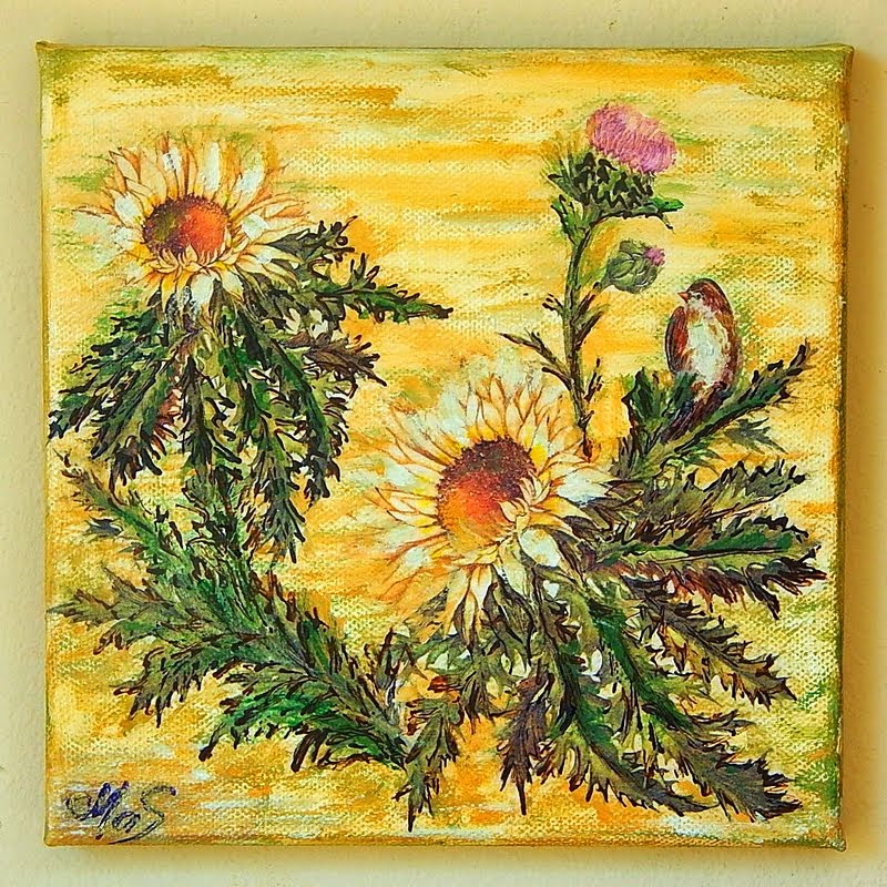 Καμβαδάκι με ακρυλικά, decoupage χαρτοπετσέτας και ενός ρυζόχαρτου (που μου είχε χαρίσει η Dimi),