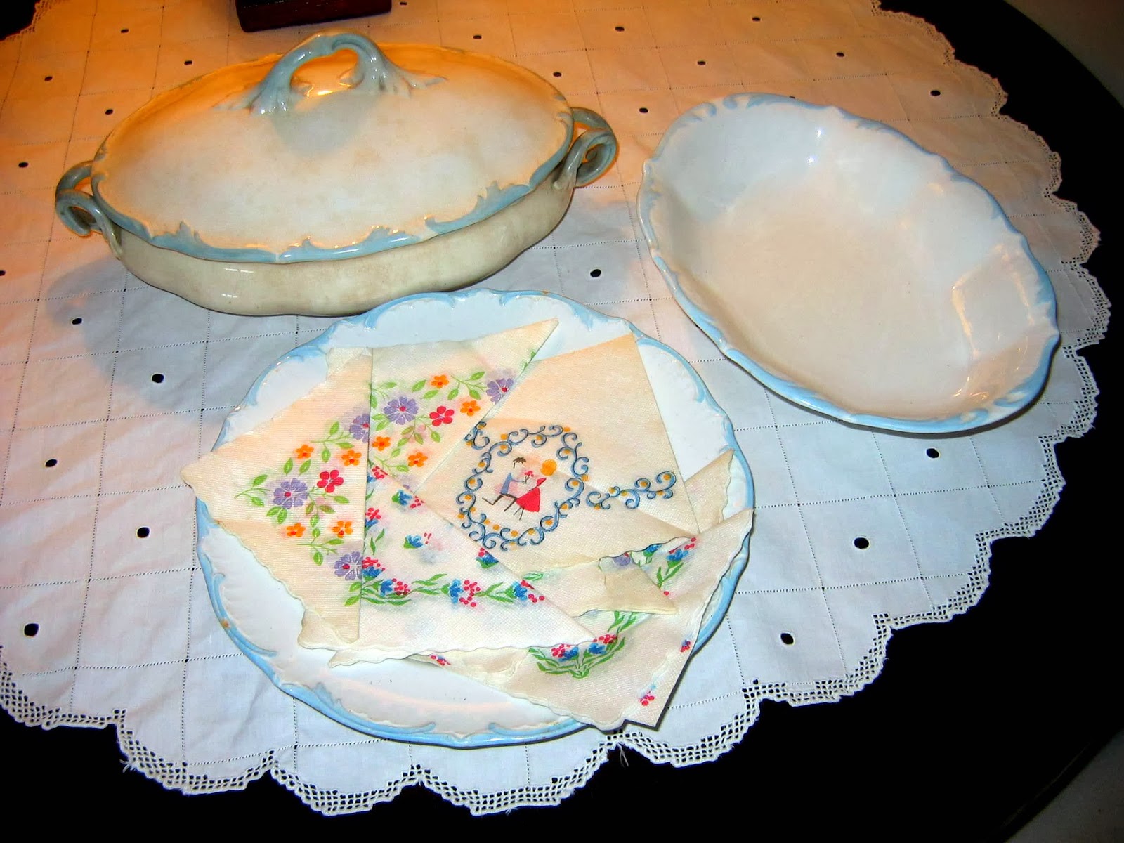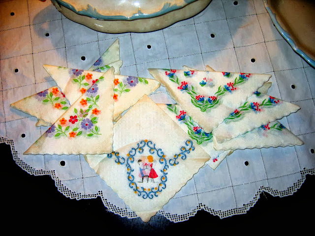 I will of course display it in my new craft-room, which I am preparing in our small upstairs sitting-room (which we don't use anymore) and where I already have a desk with an old PC, my photo albums, all my souvenirs, but also my sewing machine,my ribbons and laces...what better place to also transfer there my decoupage stuff and have everything around me!?