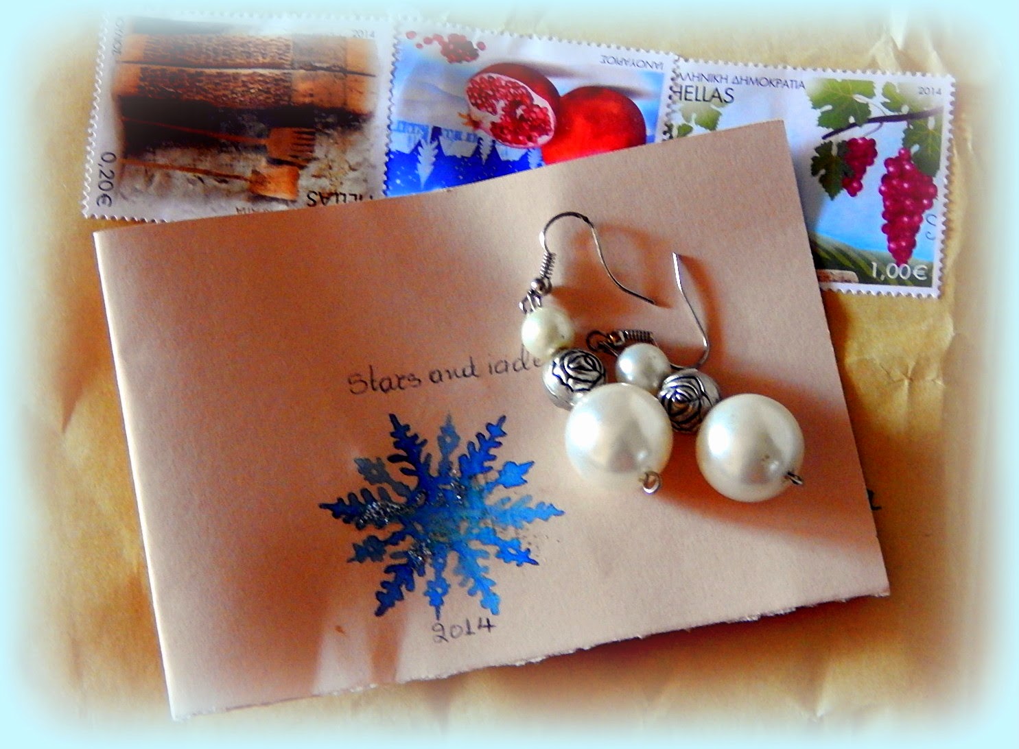 Με την ευκαιρία θέλω να ευχαριστήσω, και από εδώ, την αγαπημένη μας Κάτια/Marilise για τα όμορφα σκουλαρικάκια που μου έστειλε ως αναμνηστικό για την συμμετοχή μου στο Χριστουγεννιάτικο πανηγύρι της