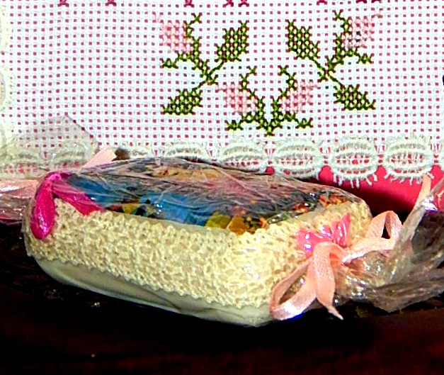 Σ΄εκείνη την ανάρτηση σας είχα δείξει το παλιό κατεστραμμένο μεταξωτό καρρέ του οποίου είχα χρησιμοποιήσει κομμάτια από την δαντέλλα του.