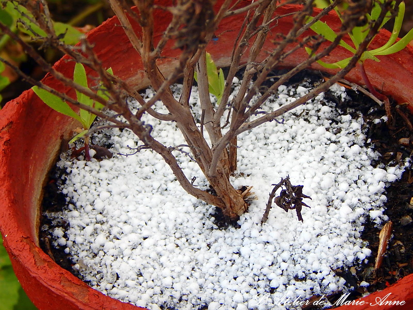 Η ανθισμένη μου αμυγδαλιά έχασε πολλά άνθη της από τους ισχυρούς ανέμους, αλλά φαίνεται να άντεξε και στο χιόνι
