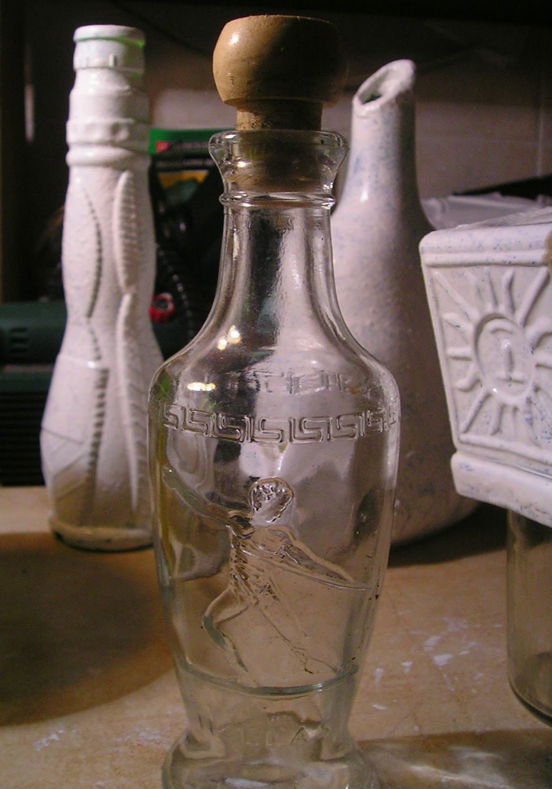 Ξεκίνησα λοιπόν, όπως σας έλεγα, με τέσσερα μπουκαλάκια, στα οποία θέλησα να δοκιμάσω ένα υλικό που τα κάνει οπάκ. Είχα δοκιμάσει παλαιώτερα με δικό μου τρόπο, σ'ένα βαζάκι...αναμειγνύοντας διάφανο αστάρι με ακρυλικό χρώμα και το αποτέλεσμα ήταν αυτό: