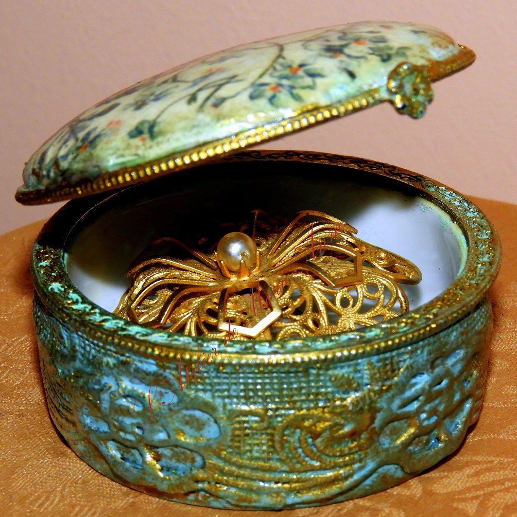 με χρώμα κιμωλίας, χρυσή δαχτυλοπατίνα και παλαίωση με κερί.