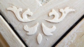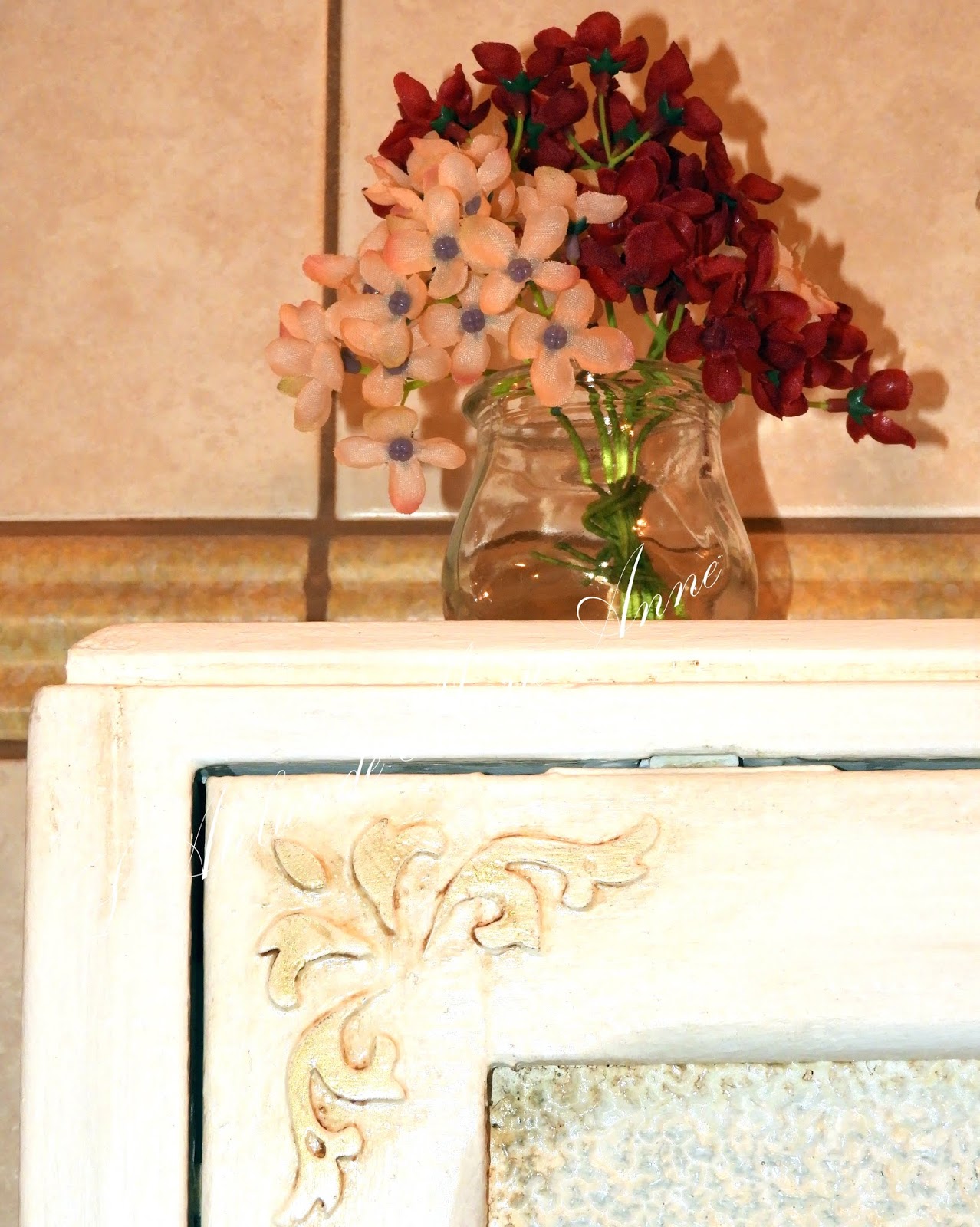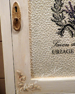 Στόλισα τις τέσσερες γωνίες της πορτούλας με ανάγλυφα stencils από ακρυλικό στόκο,