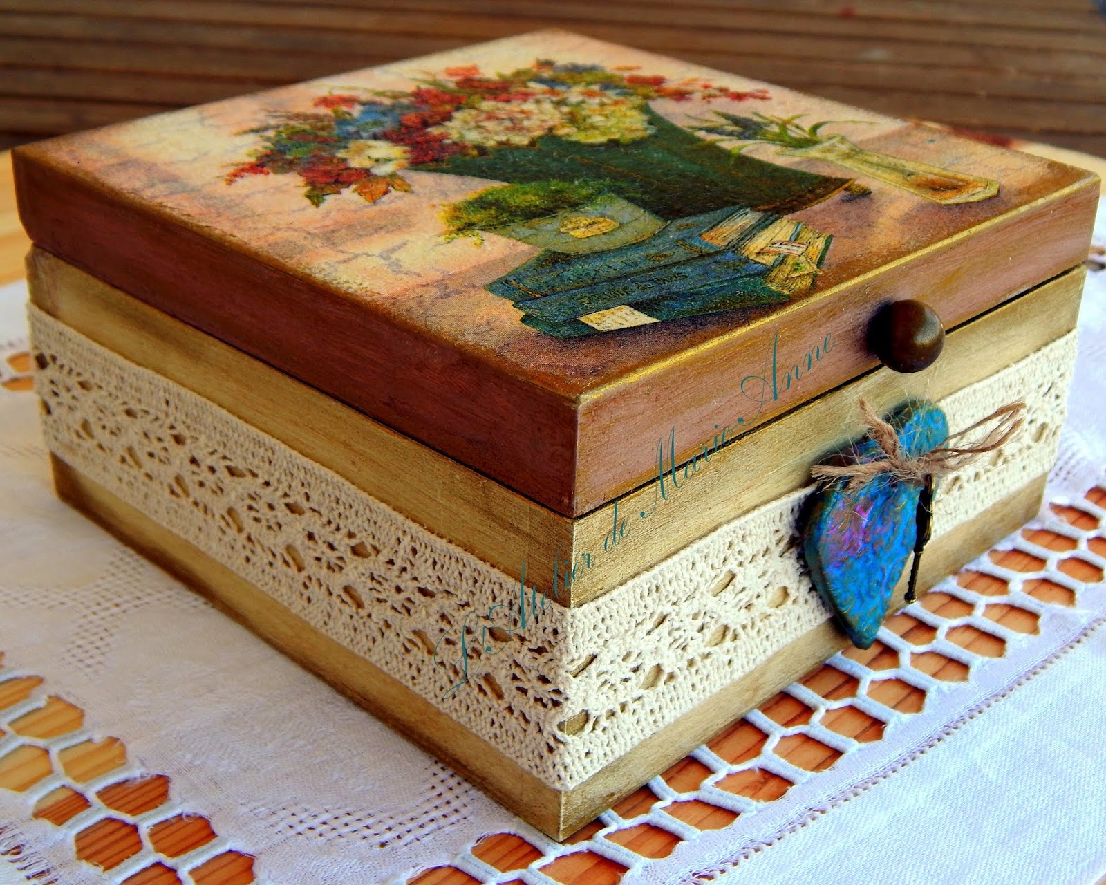 Κατ'αρχάς, να σας πώ πόσο ευχαριστήθηκα την κάθε φάση της διακόσμησης αυτού του ξύλινου κουτιού, για την οποία έθεσα σ'εφαρμογή διάφορες τεχνικές.