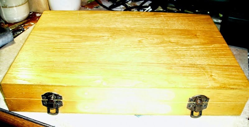 Πάνω στο γραφείο, η παλιά ξύλινη κασετίνα ζωγραφικής