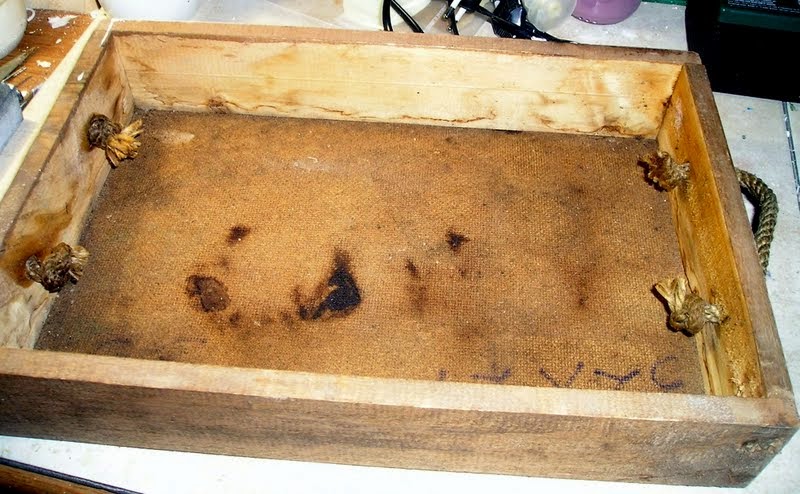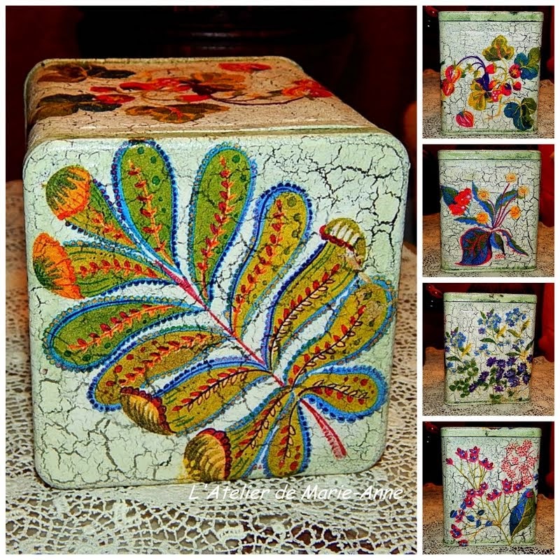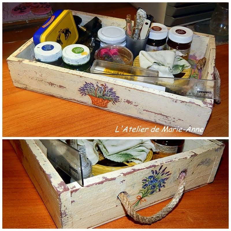 ενώ κάποιες άλλες, μαζί με μερικές δαντέλλες, βρήκαν θέση στο παλιό κουτί του μπαμπά μου, που το είχα στην αποθήκη (για πολλά χρόνια και σε χάλια κατάσταση) γεμάτο μικροεργαλεία και άλλα τζάντζαλα. Χρειάστηκε πολύ στοκάρισμα (μέσα και έξω / πάνω και κάτω) και τρίψιμο, μέχρι να το συνεφέρω για να μπορέσω να το ντεκουπάρω. Αλλά νομίζω πως άξιζε τον κόπο.