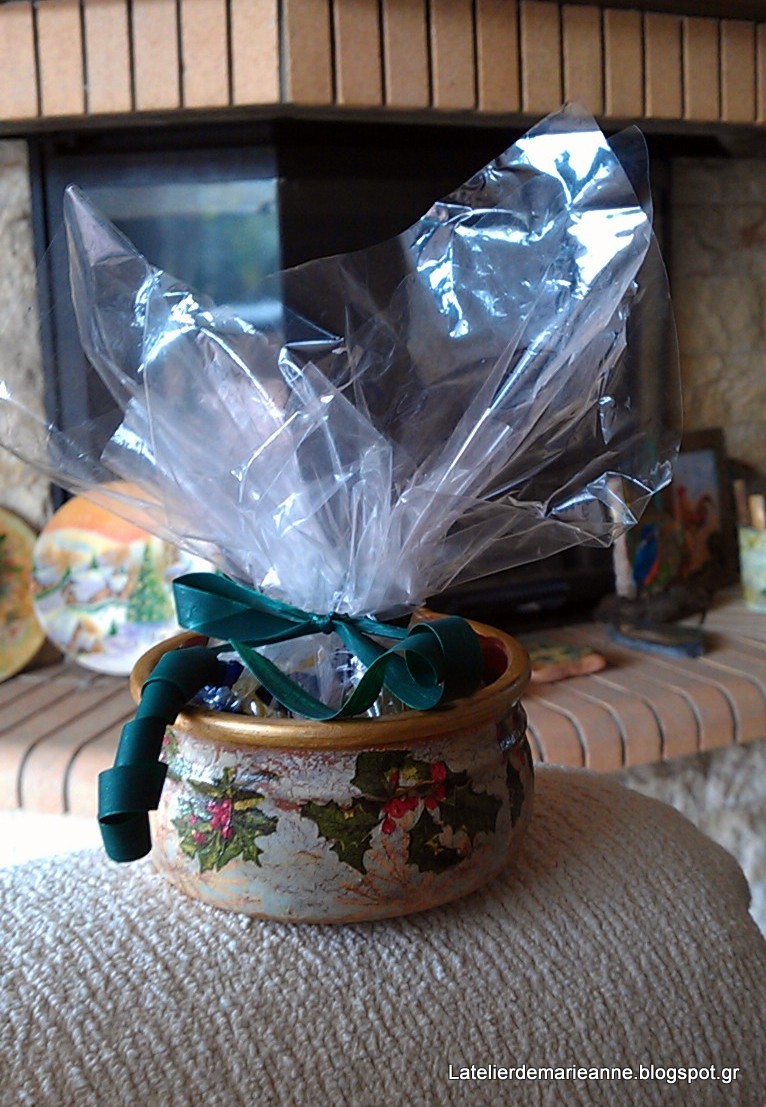 Μέσα στο κουτί υπήρχε κι ένα όμορφο ντεκουπαρισμένο μυρωδάτο σαπουνάκι, δεν πρόλαβα όμως να το φωτογραφίσω, γιατί ήρθε η κόρη μου με φίλους και το πήραν αμέσως να το χρησιμοποιήσουν στο μπάνιο.
