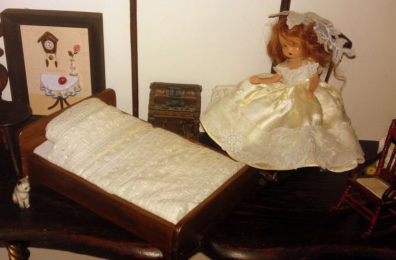 Στην προηγούμενη ανάρτησή μου είχα αναφερθεί στα επιπλάκια που είχε φτιάξει ο πατέρας μου για την κουκλίτσα. ‘Οταν, στις αρχές του μήνα, η μητέρα μου επέστρεψε από το νοσοκομείο, έμεινα μαζί της τις πρώτες ημέρες και είχα την ευκαιρία να ‘ψαχουλέψω’ λίγο στην αποθήκη της. Εκεί, μέσα σ’ένα συρτάρι με διάφορα εργαλεία του μπαμπά, ήταν ένα κουτί το οποίο περιείχε κάτι ξυλαράκια. Δεν θα τους έδινα σημασία εάν δεν πρόσεχα ότι ήταν λουστραρισμένα. Και όταν τα έβγαλα ....δεν πίστευα στα μάτια μου !! Ηταν τα κομμάτια του κρεβατιού της κούκλας !! Μπορεί να είχε διαλυθεί το κρεβατάκι, αλλά η μητέρα μου το είχε φυλάξει για πάνω από 40 χρόνια !!!!!!!!!