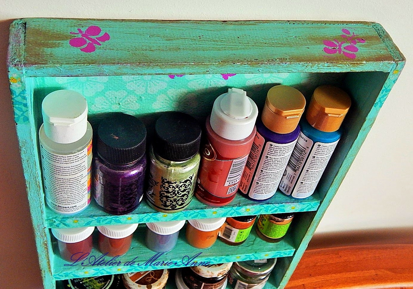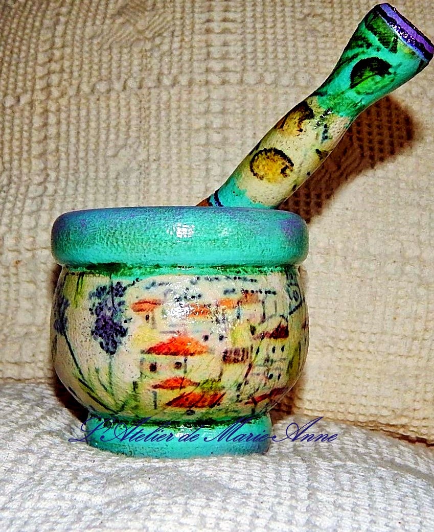 αστάρωσα και έβαψα την σημαδούρα και της έκανα κρακελέ και decoupage.
