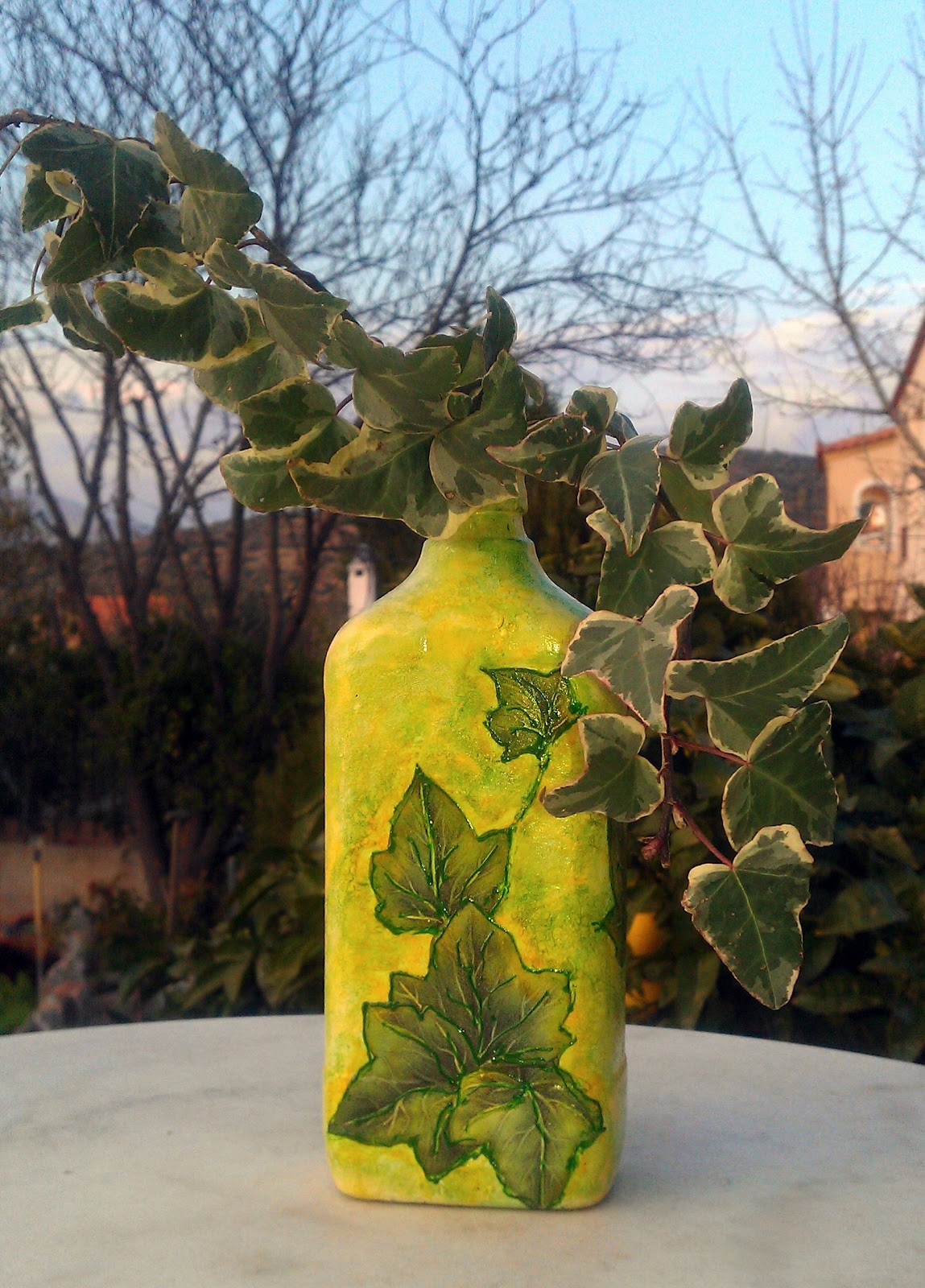 Decoupage χαρτοπετσέτας, ακρυλικά, πατίνες και ρελιέφ.