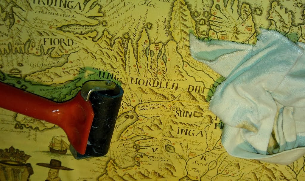βάφεται σε καφέ χρώμα και περνιέται με χρυσαφιά πατίνα σε κάποια σημεία Ο παλιός χάρτης της Ισλανδίας