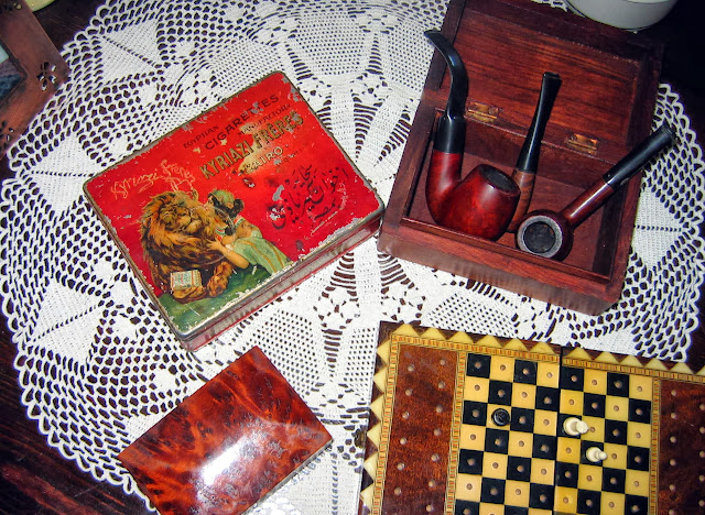 Κι όμως, σε κάποιο συρτάρι του κομοδίνου της μαμάς, ανακάλυψα τρείς πίπες τυλιγμένες σ'ένα ύφασμα. 'Αυτές ήταν του μπαμπά', μου είπε, κι εγώ τις πήρα και τις φύλαξα μέσα σ'ένα ξύλινο κουτί.