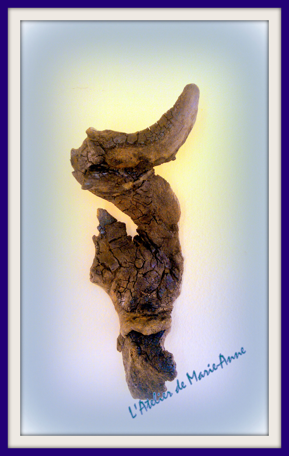 Έκανα τις σκιάσεις με πατίνα και με ακρυλικά με retarder και τέλος του πέρασε ένα κρακελέ ONE STEP του οποίου τα σκασίματα γέμισα με 'σπιτικό' bitumen (καφέ βερνίκι παπουτσιών αραιωμένο με διαλυτικό).
