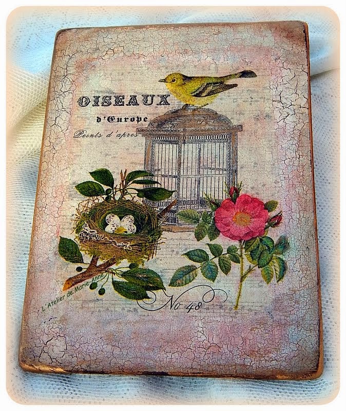 Decoupage χαρτοπετσέτας πάνω σε κρακελέ ενός συστατικού με παλαίωση και χρυσή πατίνα,